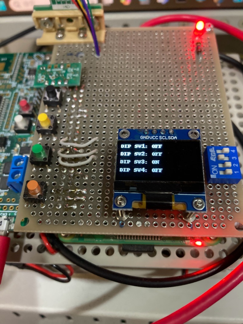 4Bit DIPスイッチ情報を、128×64ドット有機ELディスプレイに表示する検証プログラム