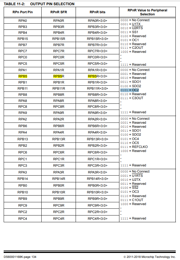 CFGCONbits.IOLOCK=0; // ロック解除 DEVCFG3bits.IOL1WAY = 1;// これ以降で、FGCONbits.IOLOCK=1にすると、変更できなくなる。 // RPnR および [pin name]R レジスタへの書き込み FGCONbits.IOLOCK=1;