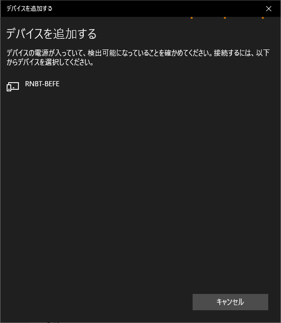 「BTName=RNBT-BEFE」の表示項目が、デバイス名でペアリングする場合に、この名前でデバイスを探します。