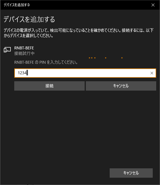 前述で調べたPINのコードを入力して、接続します。