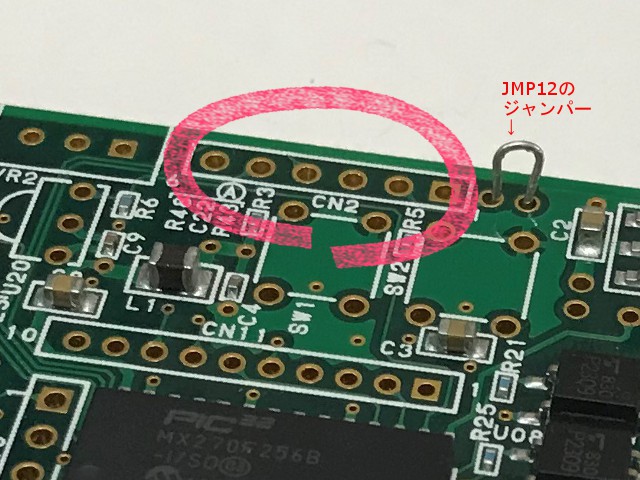 この近傍の[JMP12]をジャンパーでショートする必要があります。